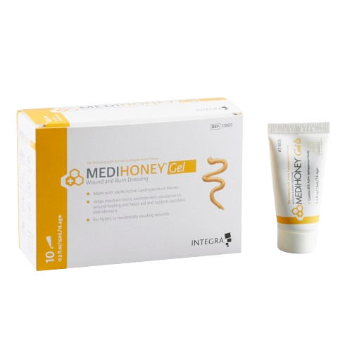 Under the supervision of a healthcare professional, MEDIHONEY® GEL WITH ACTIVE LEPTOSPERMUM HONEY dressing provides a moist environment conducive to wound healing and is indicated for non-draining to moderately exuding wounds such as: Diabetic foot ulcers, Leg ulcers (venous stasis ulcers, arterial ulcers and leg ulcers of mixed etiology), Pressure ulcers / sores (partial and full thickness), 1st and 2nd degree partial thickness burns, donor sites, and traumatic and surgical wounds.